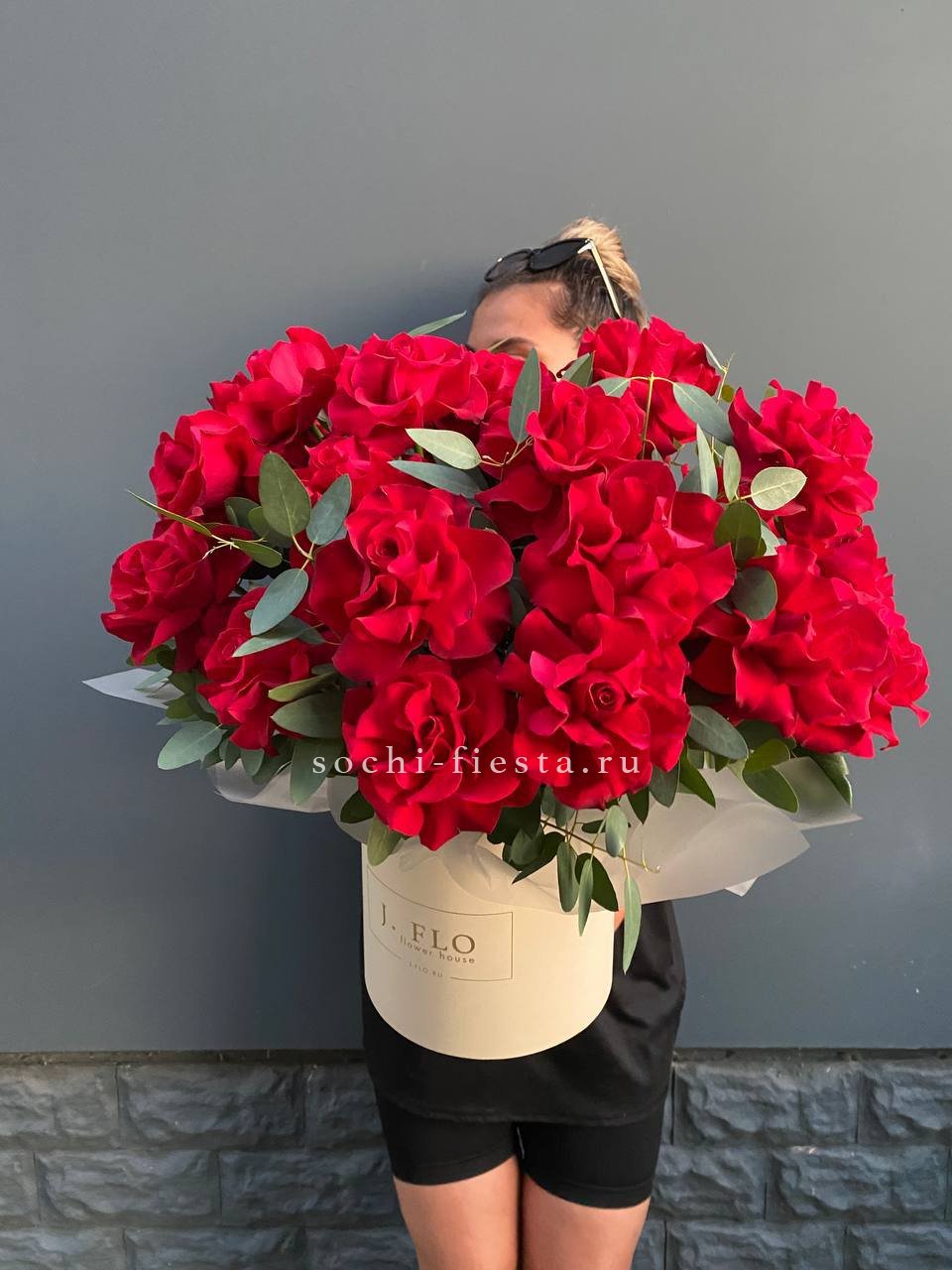 вывернутые кеннийские розы, джутовое кашпо, эвкалипт, лента, упаковка.