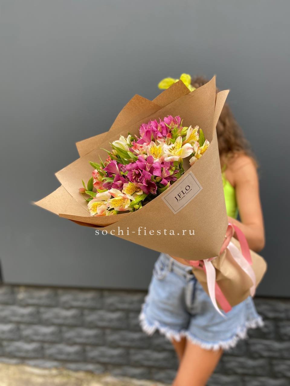 альстромерии - 9 веток, лента, крафт.