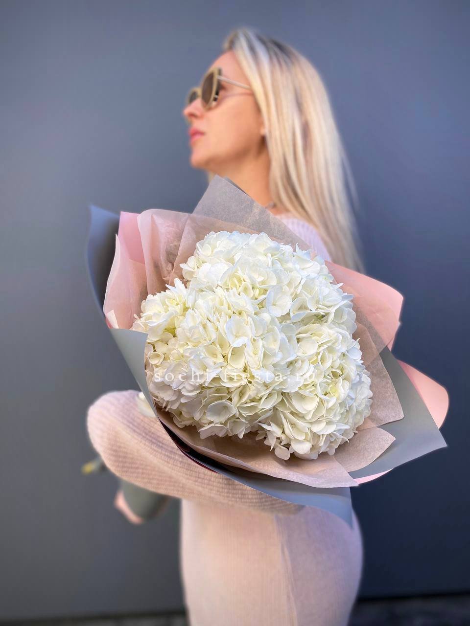 Букет из трёх белых гортензий