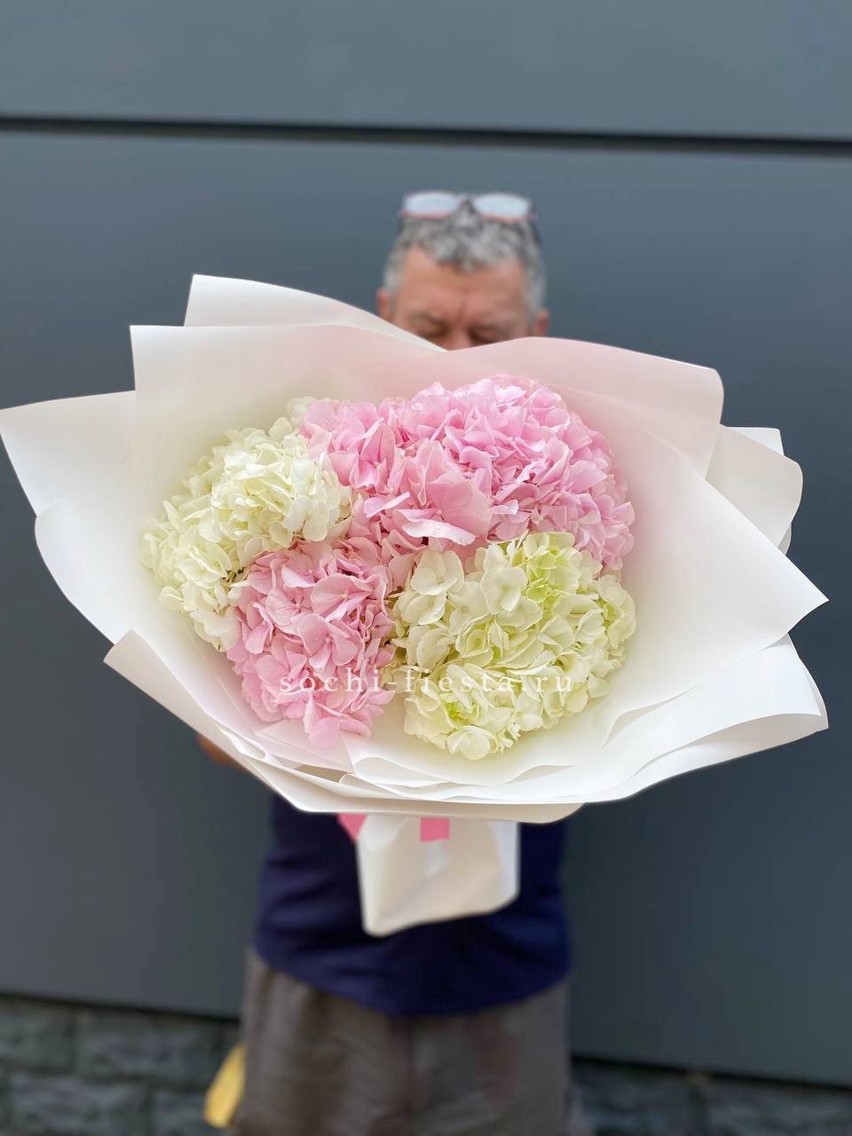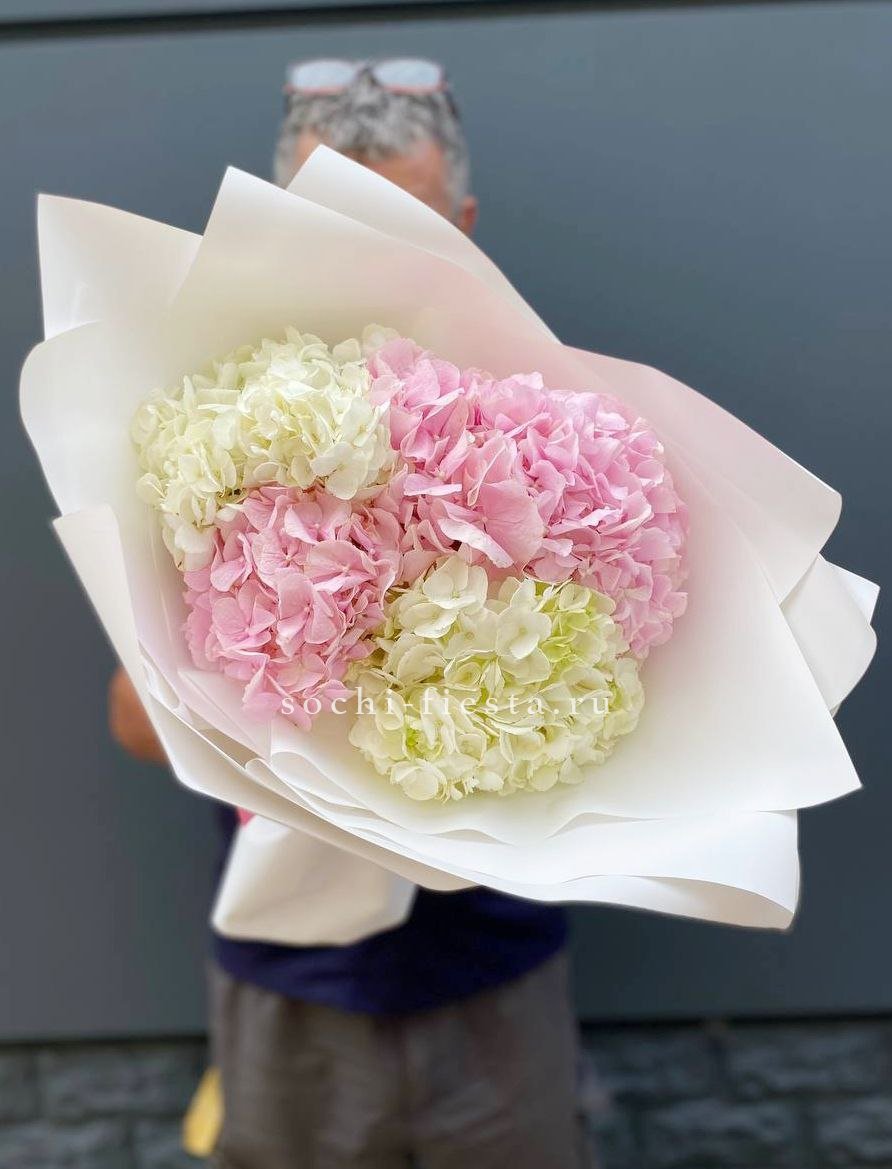 гортензия, лента, дизайнерская упаковка. Цвет гортензии на выбор
