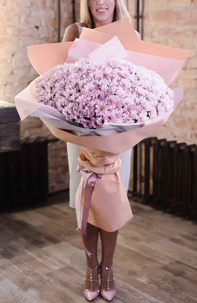 Девять кустовых хризантем собраны в плотный круглый силуэт. Каждая ветка раскрывается веером мелких соцветий, создавая объёмную текстуру. Букет держит форму и выглядит графично.