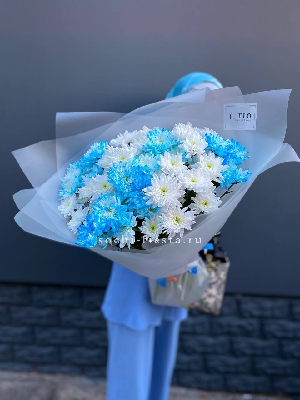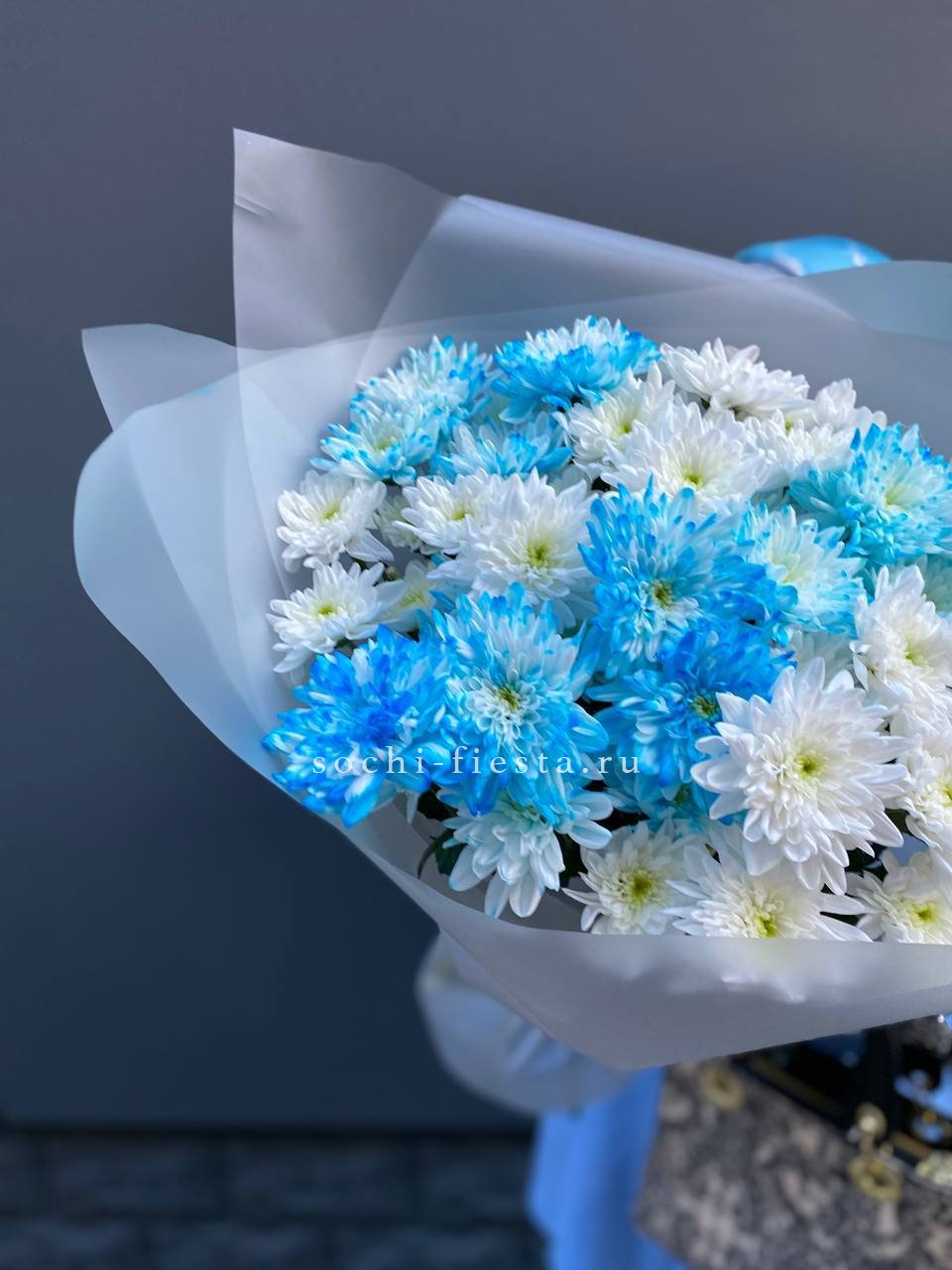 хризантема кустовая - 5 шт., лента, дизайнерская пленка.