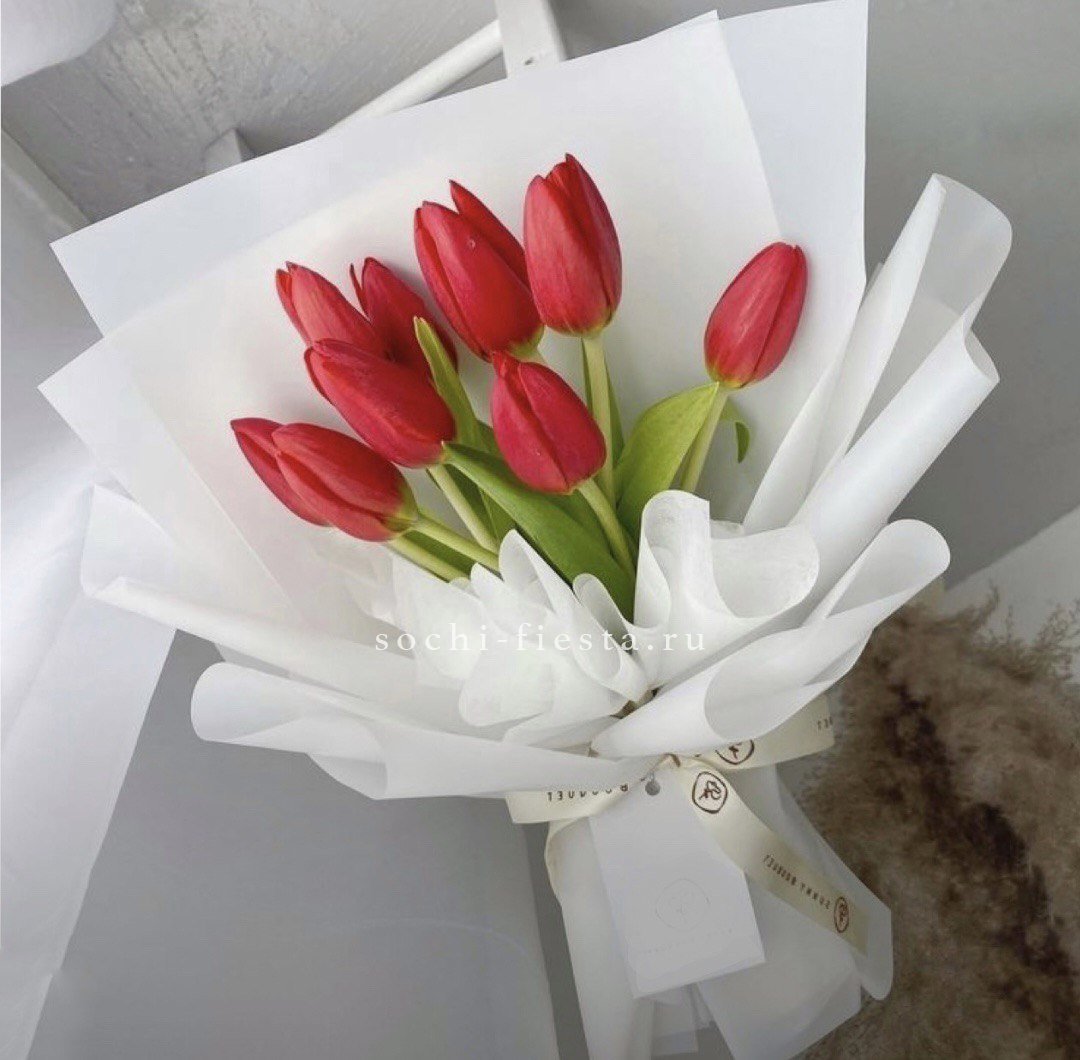 изначальная цена указана за букет из 15 тюльпанов Состав букета на фотографии: 35 тюльпанов, лента, упаковка.
