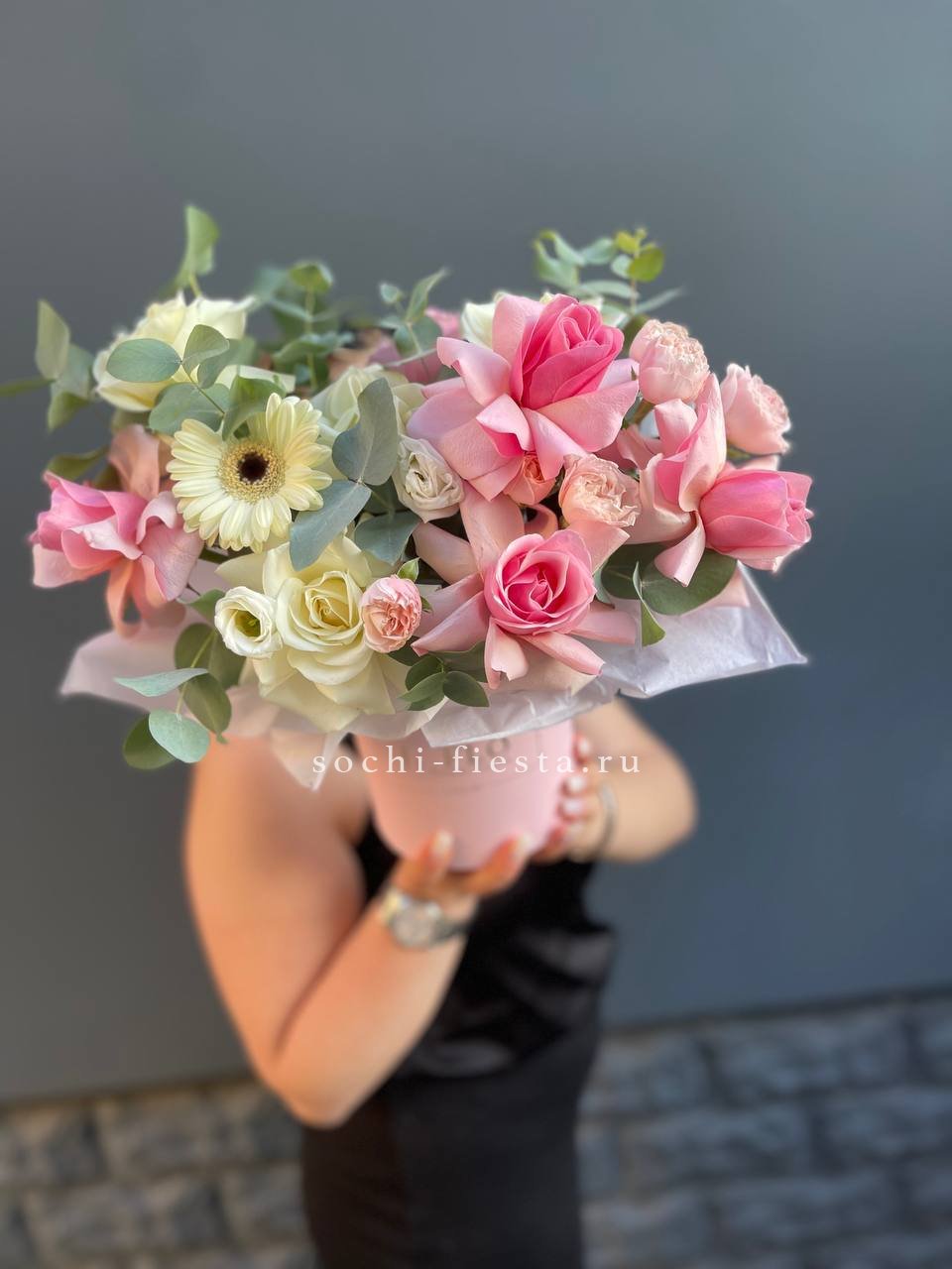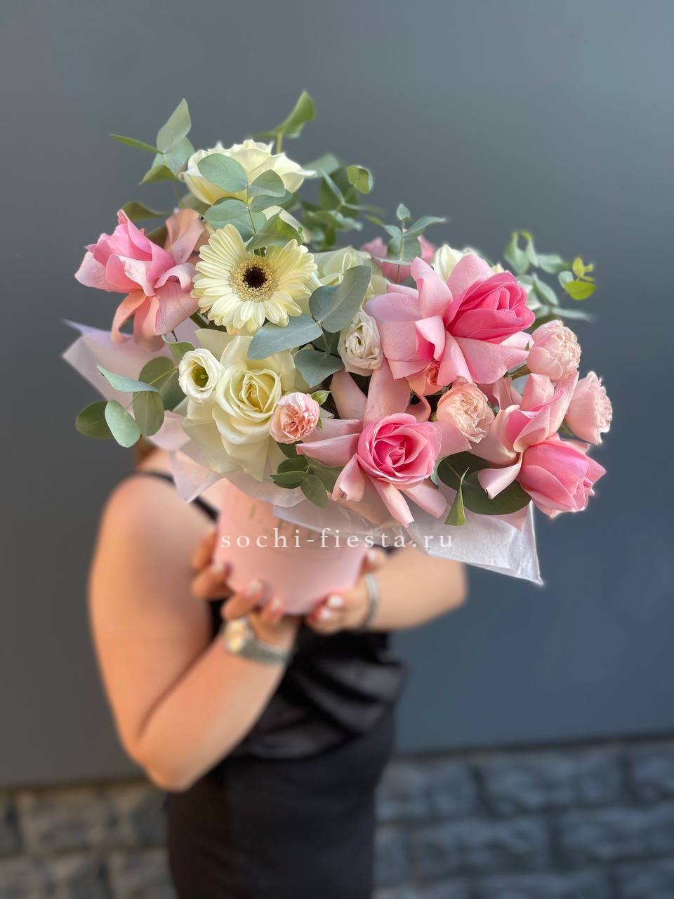гербера, бомбастик, озотамус, эвкалипт, эустома, бокс 13.