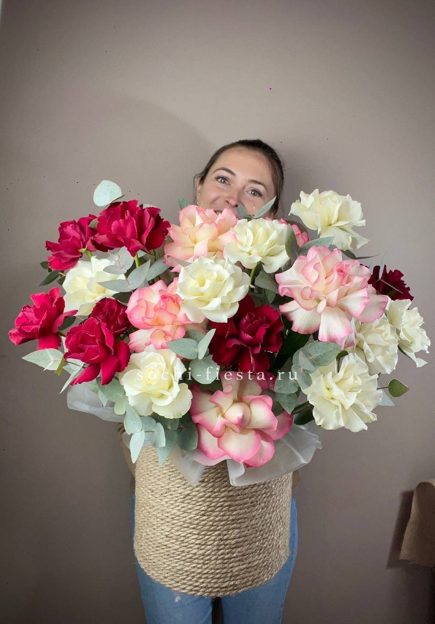 Для заказа товара "35 французских роз микс в джутовом боксе" с доставкой в Чебоксарах нажмите в корзину