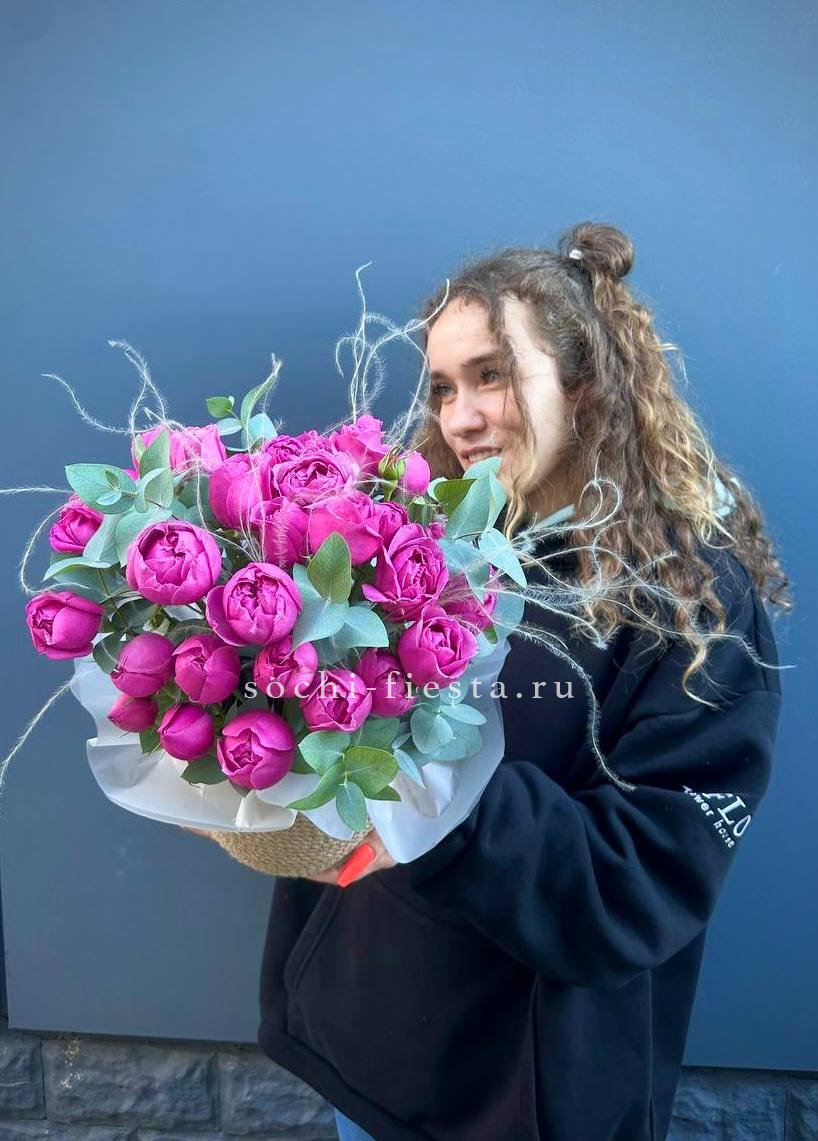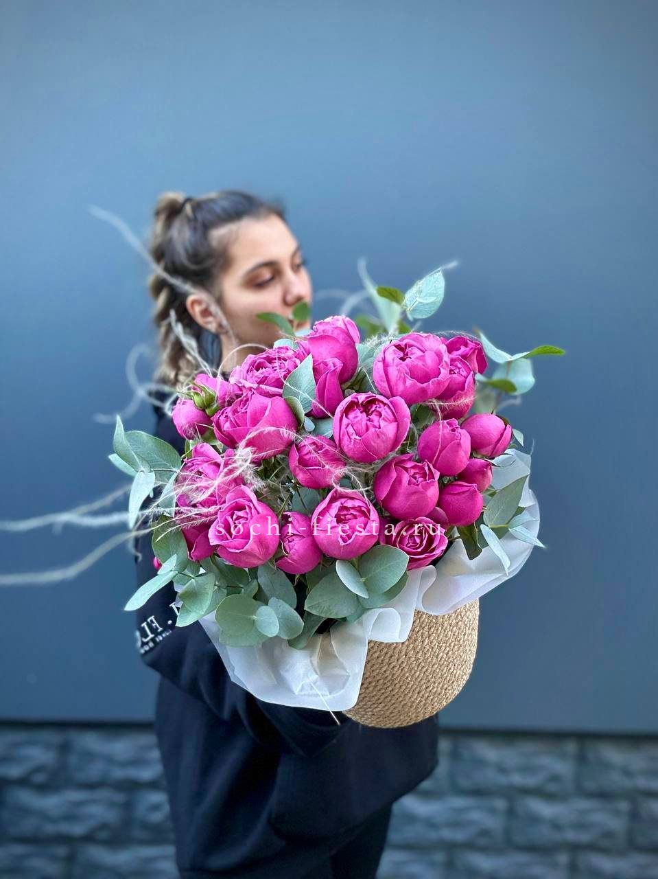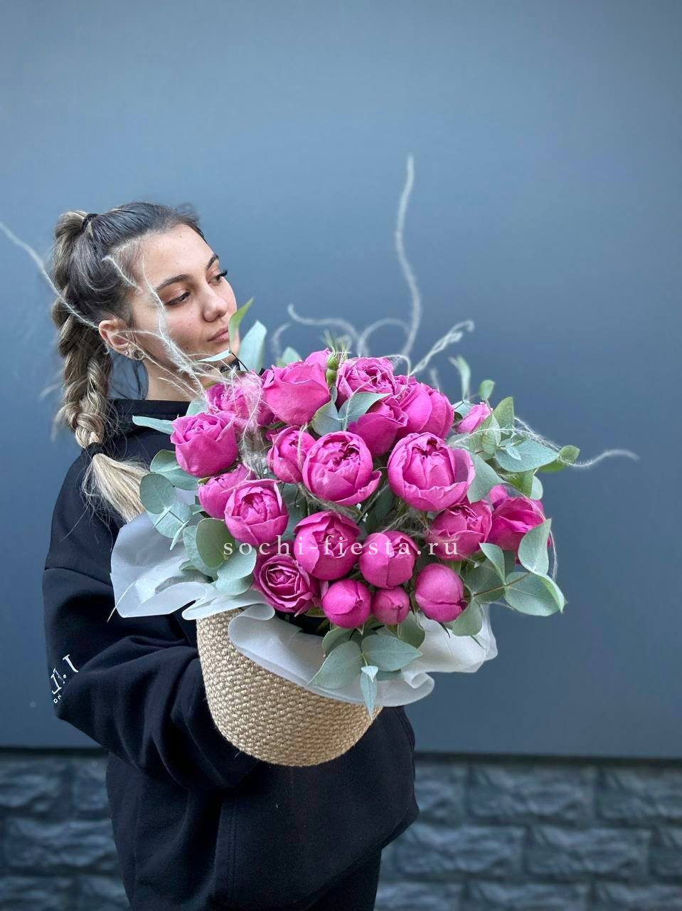 Для заказа товара "Пионовидные розы в джутовом кашпо " с доставкой в Чебоксарах нажмите в корзину
