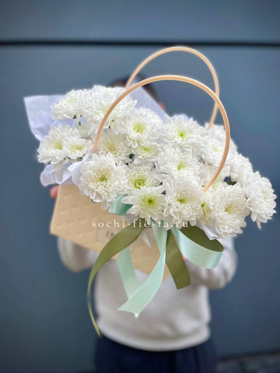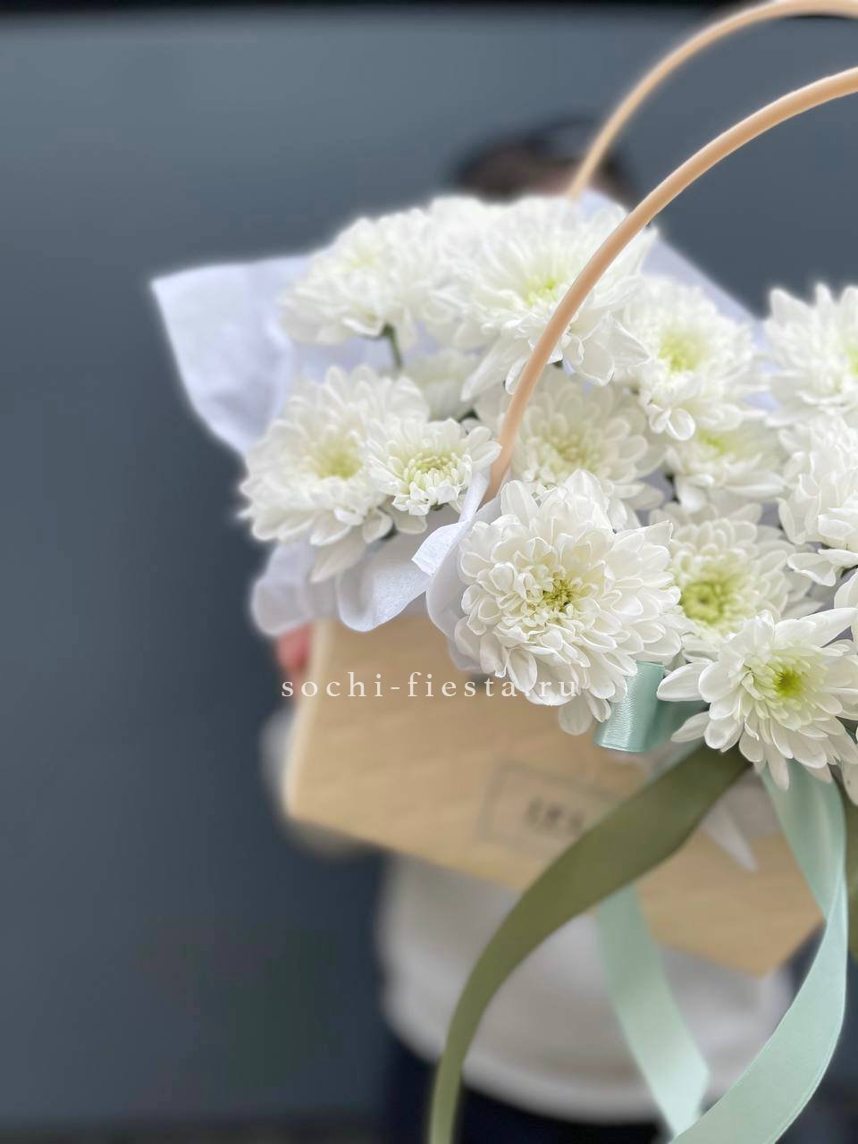 хризантемы, статица (аналог), маттиола, сумочка, оазис, оформление.