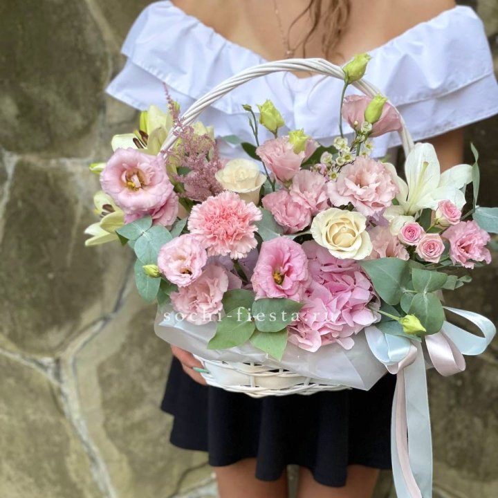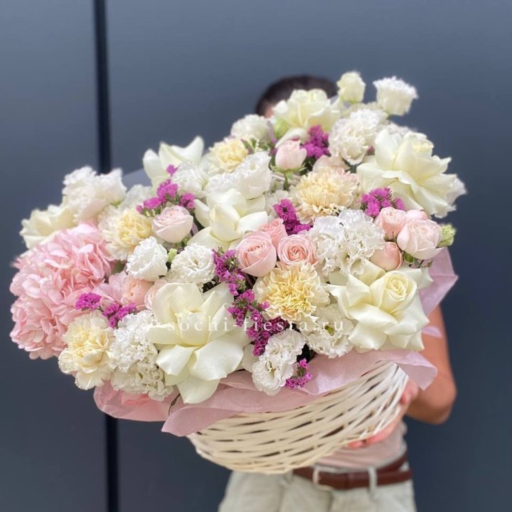 Каждый сезон приносит в Чебоксарах свой ассортимент корзин. Весной флорист создаёт корзины с тюльпанами и нарциссами — лёгкие, нежные, полные ощущения обновления. В мае-июне приходят пионы — Sarah Bernhardt, Bowl of Cream, Red Charm — главный флористический праздник. Осенью — хризантема в тёплых гаммах с декоративными ягодами и ветвями. Зимой — хвойные аранжировки с амариллисом для праздничной атмосферы.