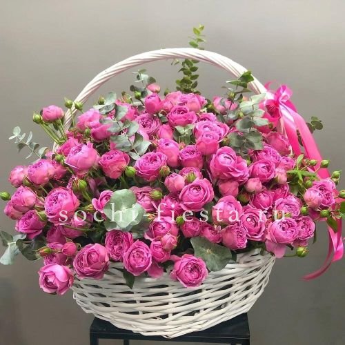 хризантема, кустовая роза, гортензия, белая роза, антиринум, статица, корзина средняя.