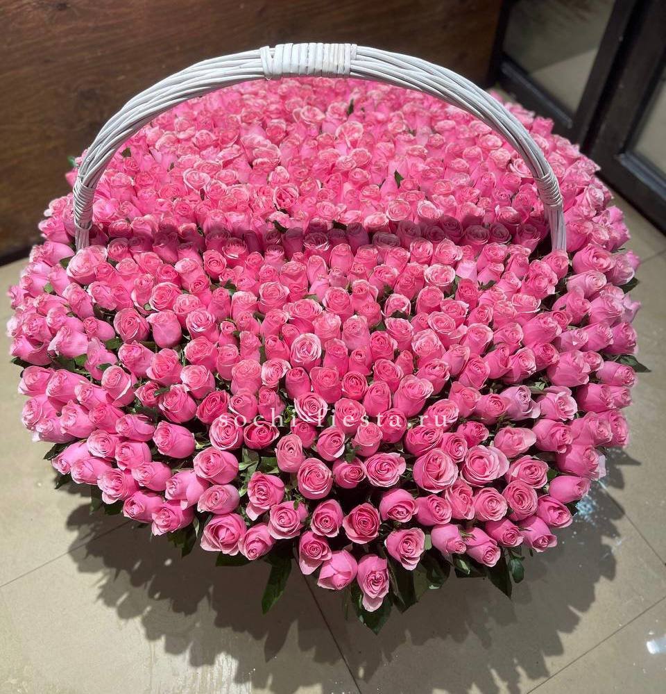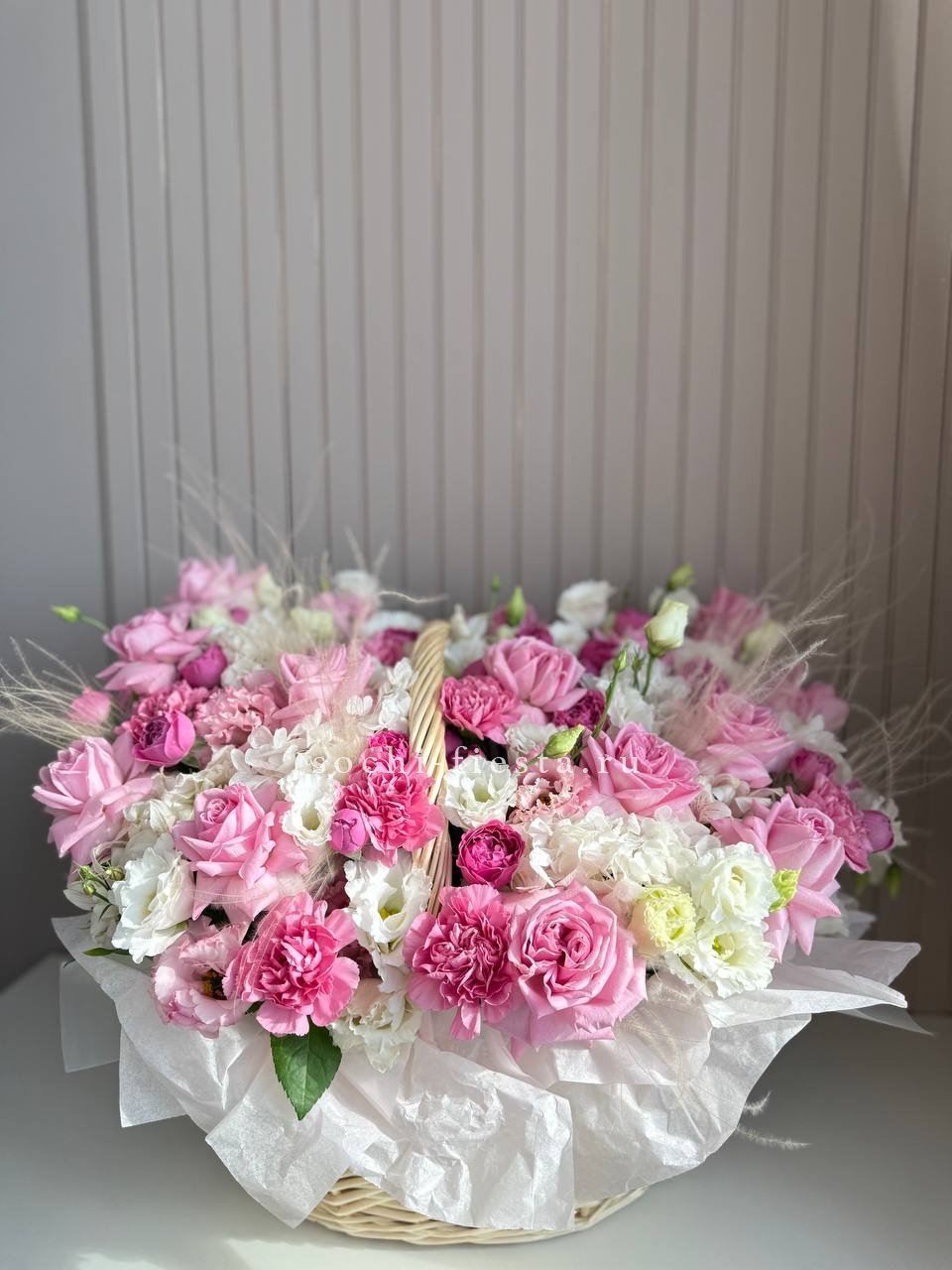 Корзина собрана плотно, каждый цветок находит своё место в общей композиции.
