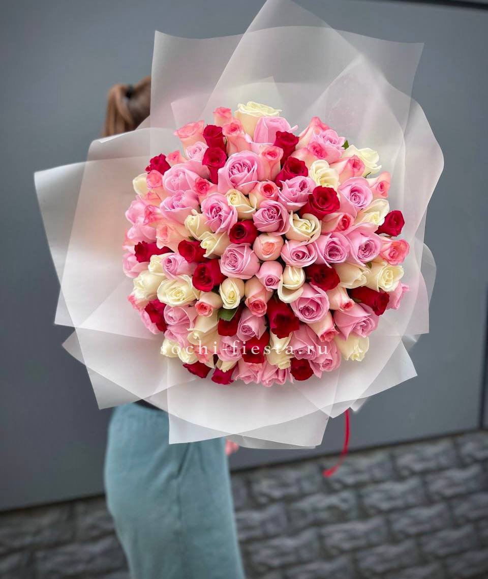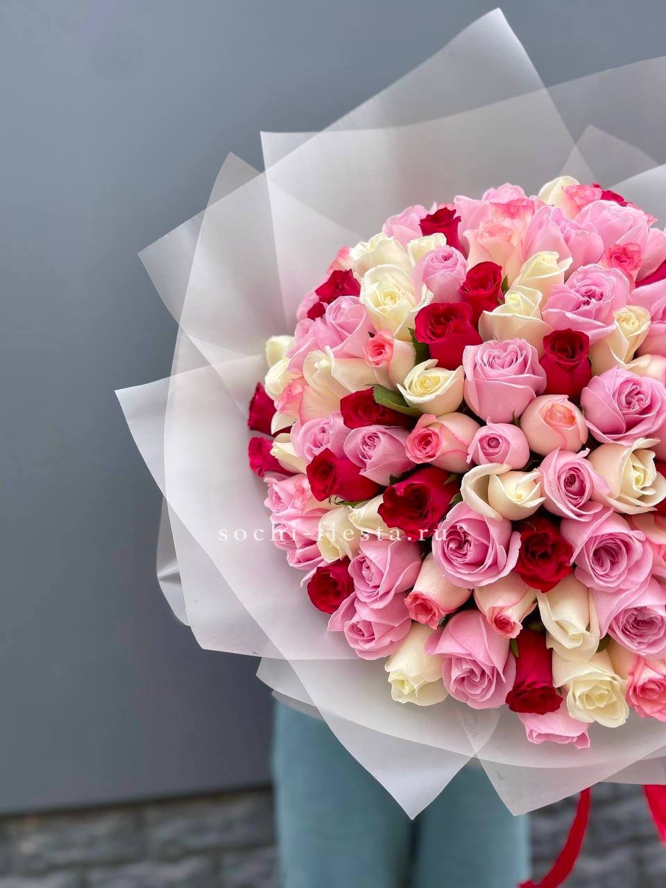 Мы работаем только со свежими цветами — букеты радуют от 7 до 14 дней и дольше при правильном уходе.