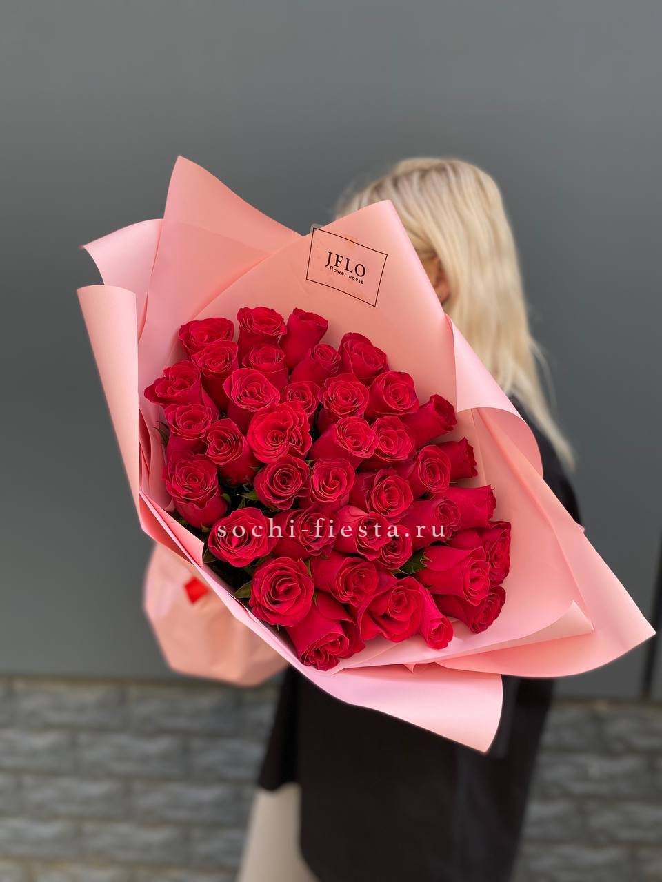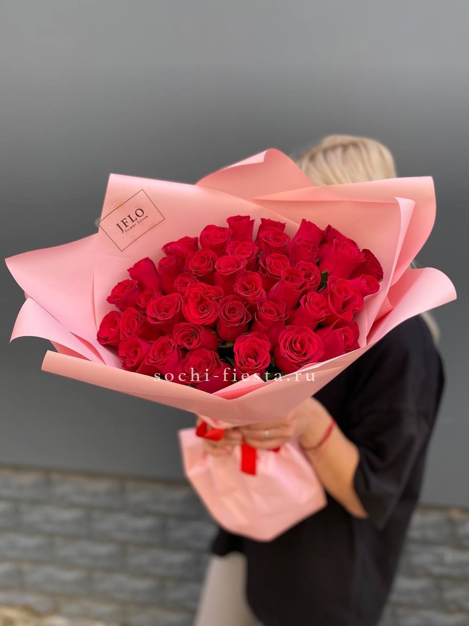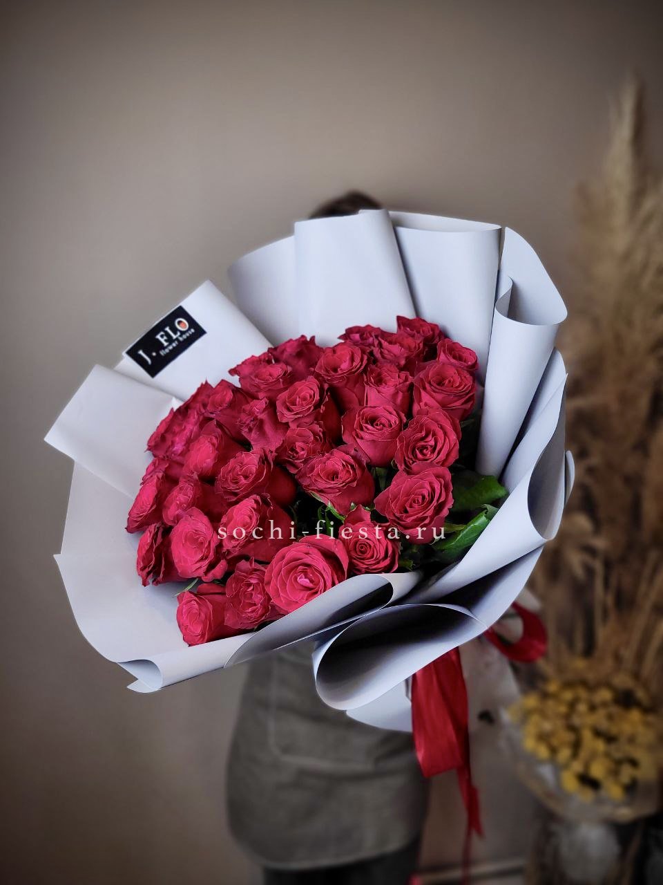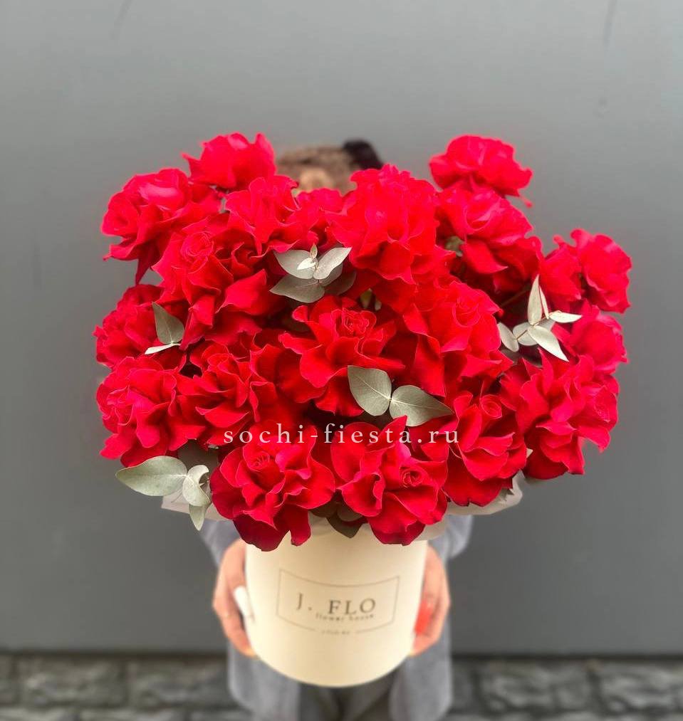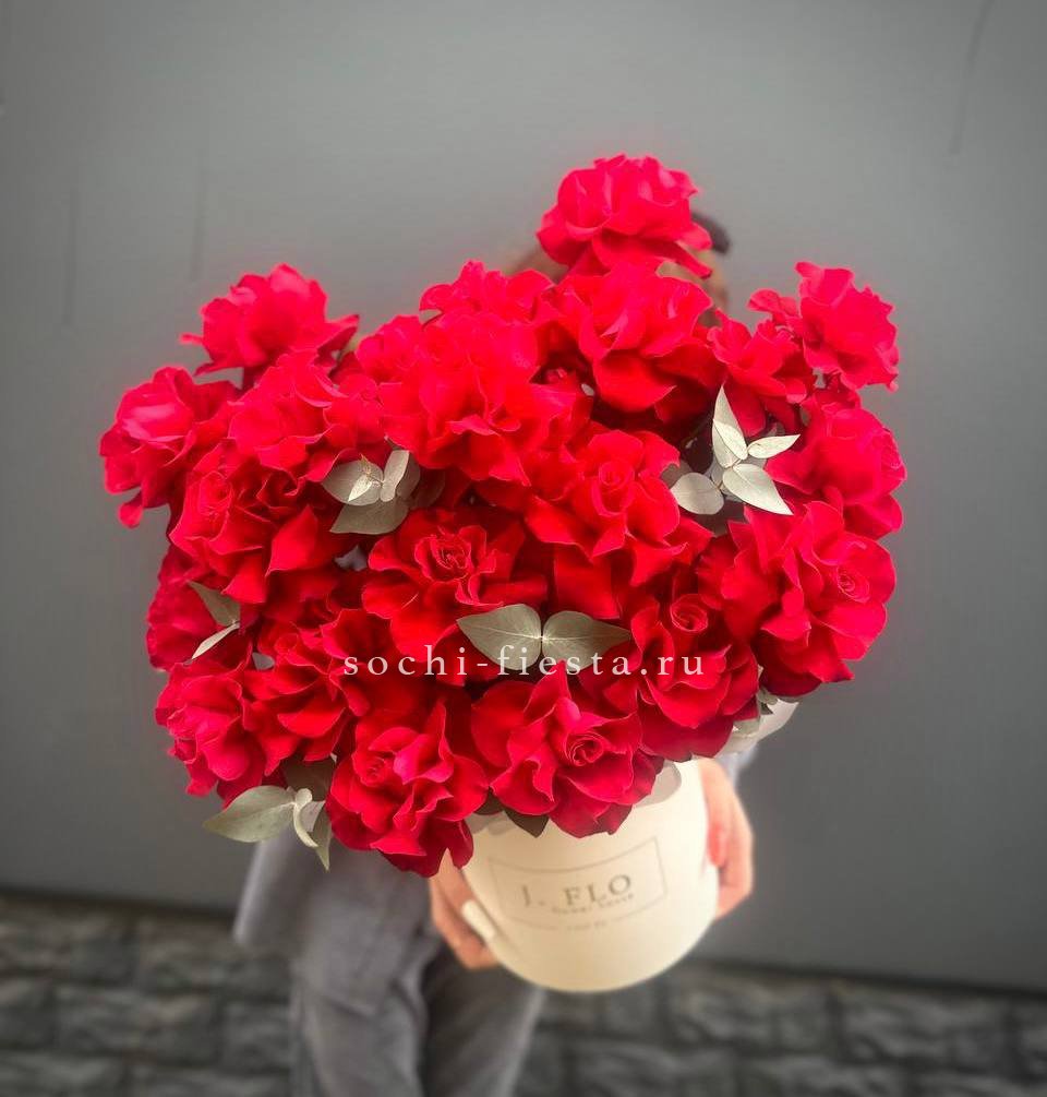 Тридцать пять алых роз собраны в букет с чёткими линиями и выверенным силуэтом. Классическая форма и насыщенный оттенок лепестков делают композицию универсальной для любого повода.