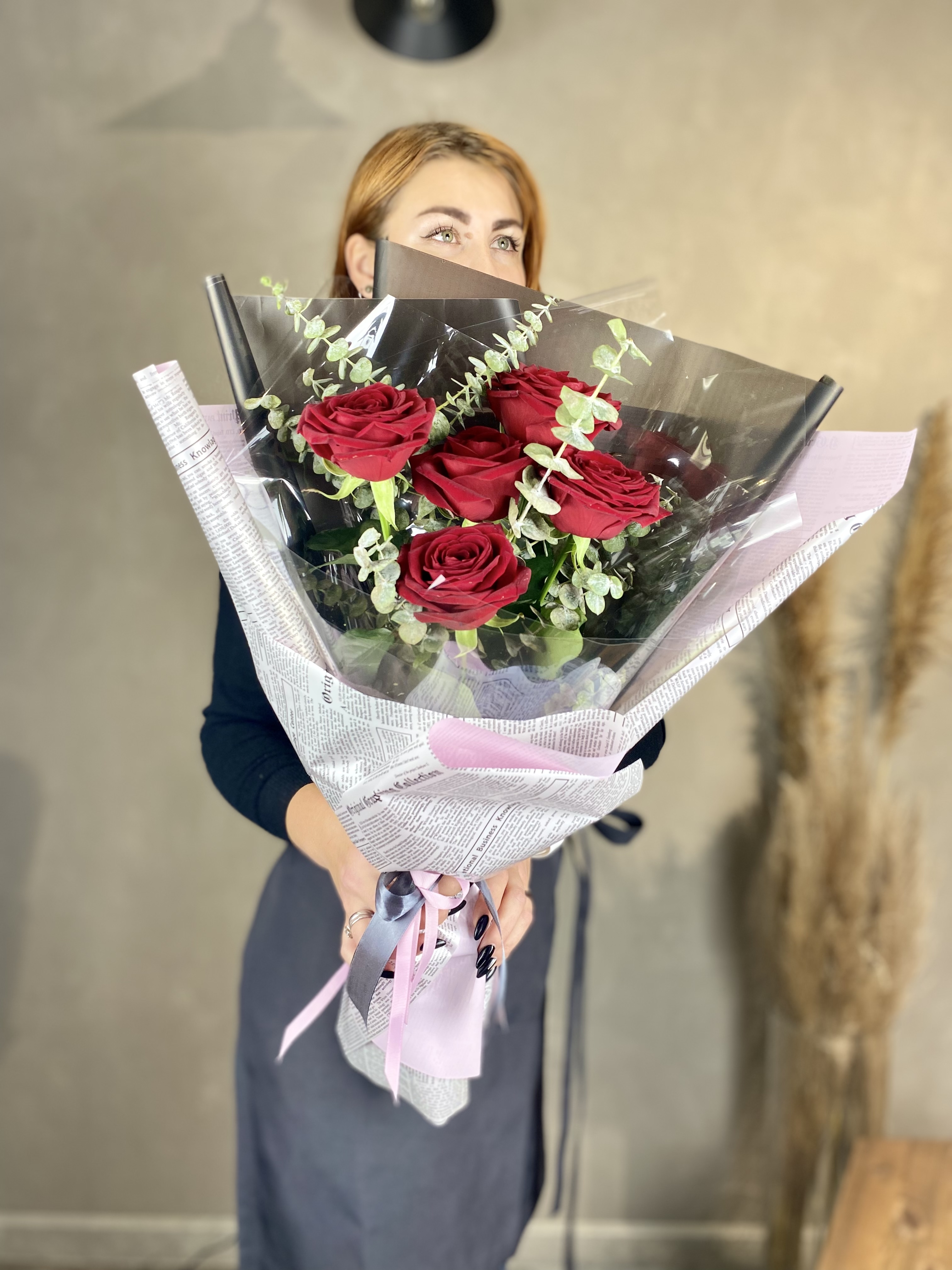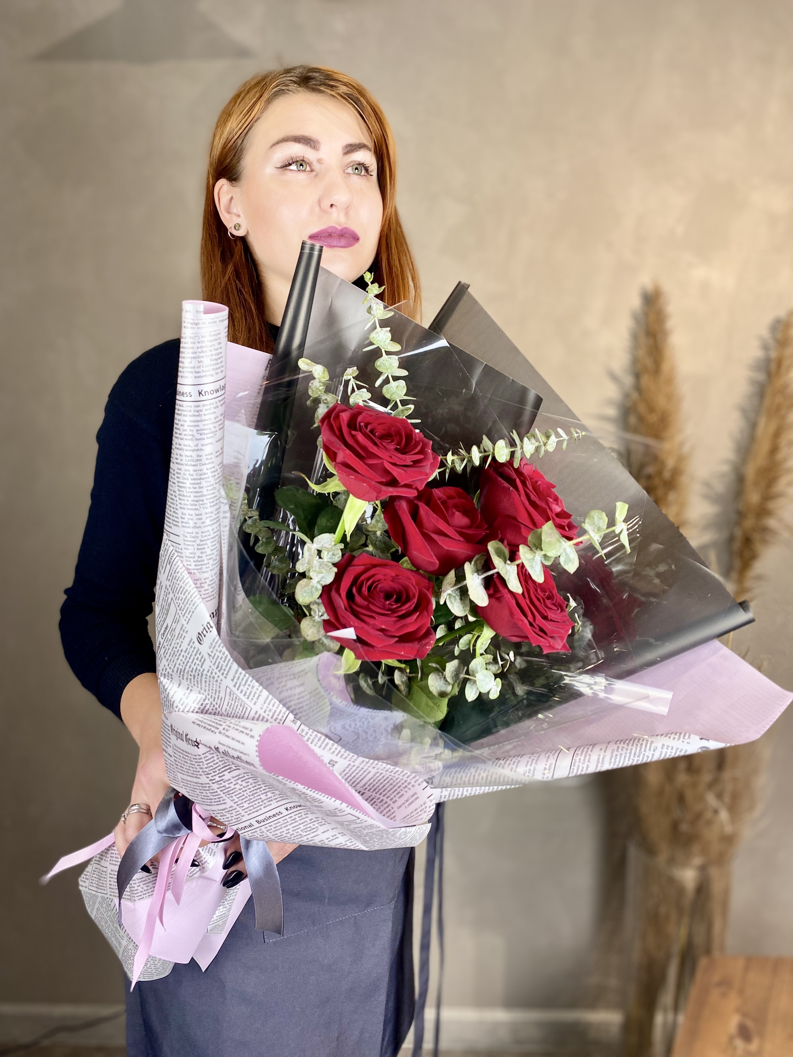 Red Naomi в графичной упаковке BLVCK — это игра между классическим красным и современной подачей. Плотные бутоны раскрываются медленно, сохраняя форму и насыщенность цвета.