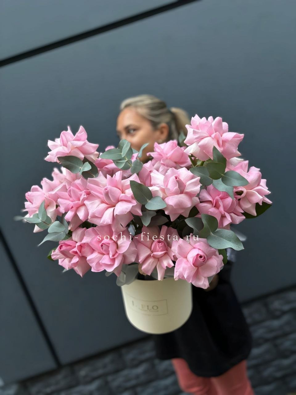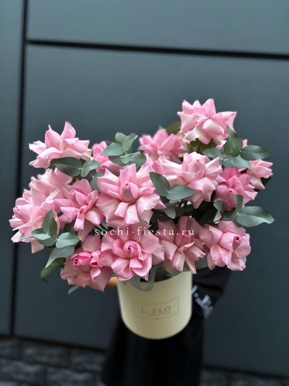 вывернутые розы - 19 шт., эвкалипт - 1шт., лента, авторская упаковка.