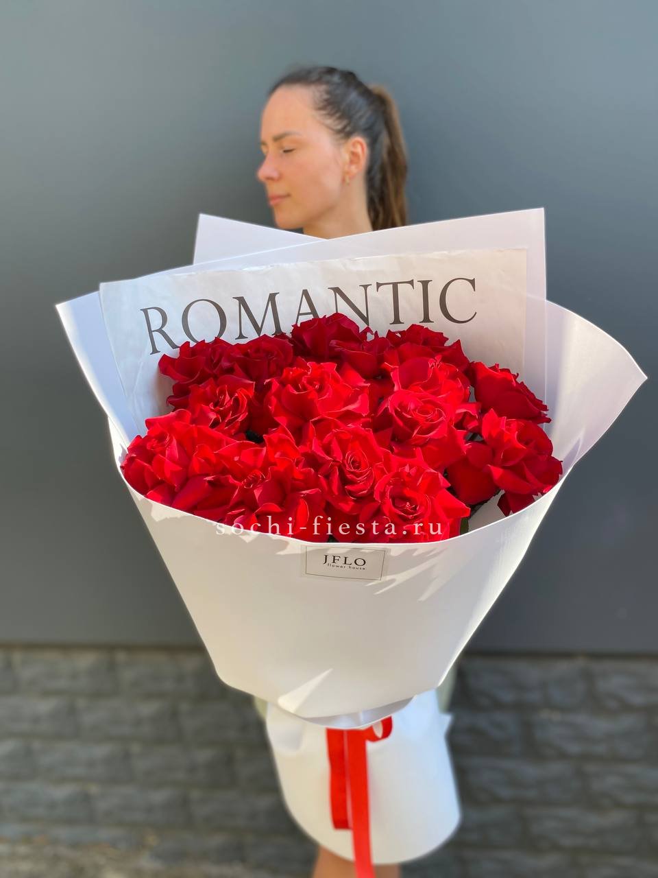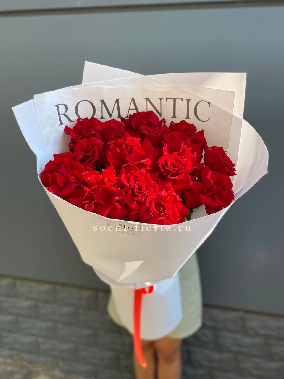 Одиннадцать голландских роз с бархатными красными лепестками уложены в плёнку с лентой. Классическая подача и выразительный цвет создают запоминающееся впечатление.