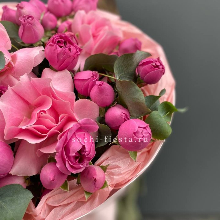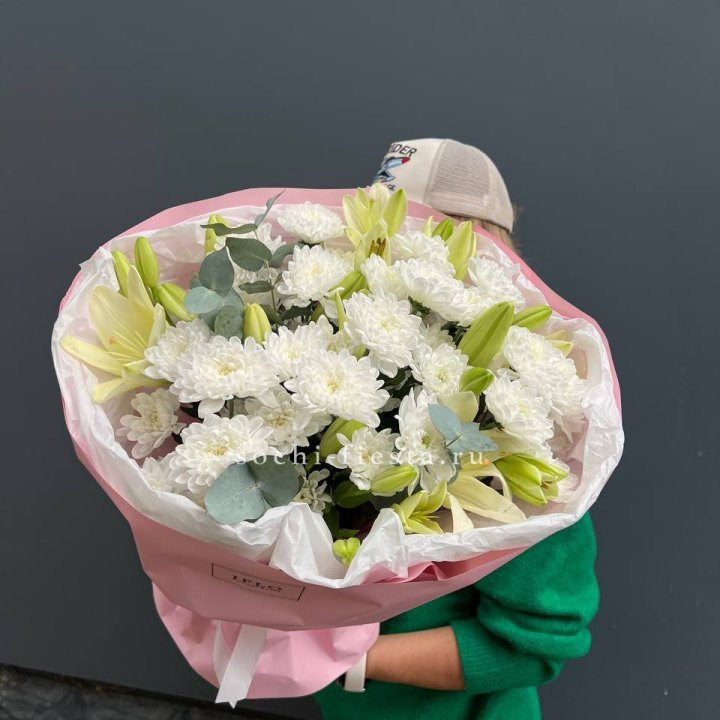 Зима и лето в Чебоксарах — розы и хризантемы как основа. Эти виды стабильны в поставках круглый год. Флорист дополняет их сезонными акцентами: хвойные ветви зимой, открытая эустома летом. Сборный букет в любое время года выглядит живым и актуальным.
