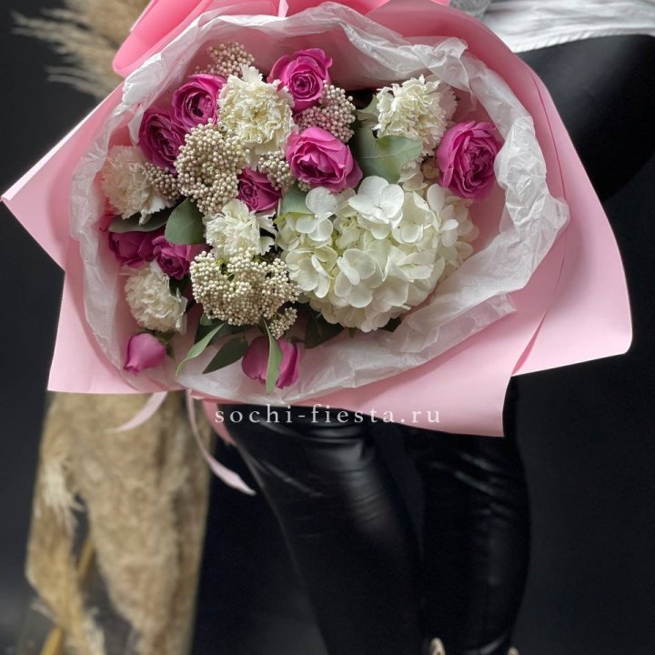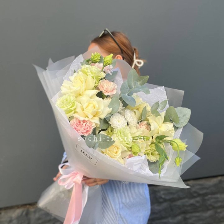 Зима и лето в Чебоксарах — розы и хризантемы как основа. Эти виды стабильны в поставках круглый год. Флорист дополняет их сезонными акцентами: хвойные ветви зимой, открытая эустома летом. Сборный букет в любое время года выглядит живым и актуальным.