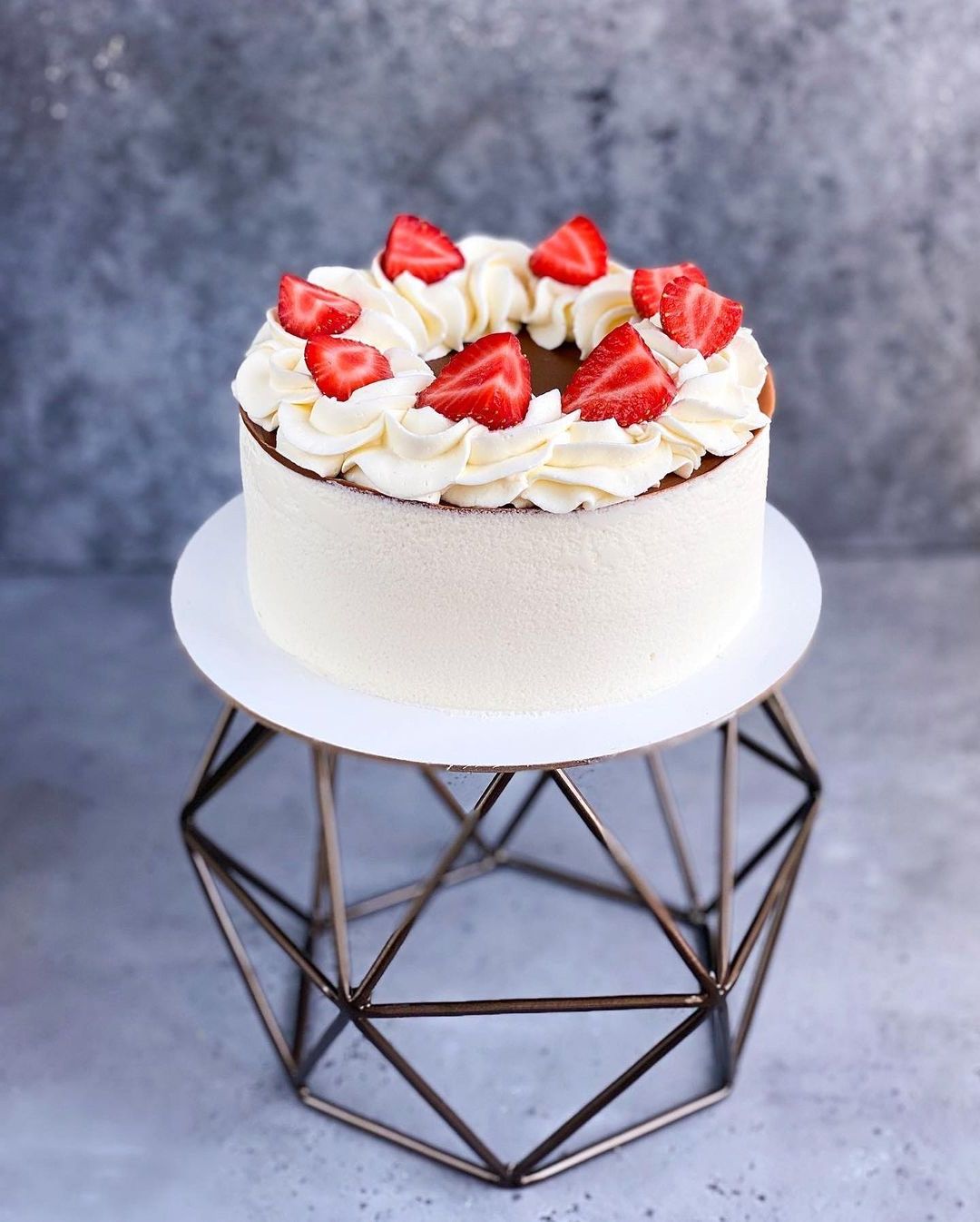 Авторская работа с плавными переходами крема и графичными линиями глазури. Декор выстроен по спирали, создавая динамику и объем. Каждый слой подчинен единому ритму.